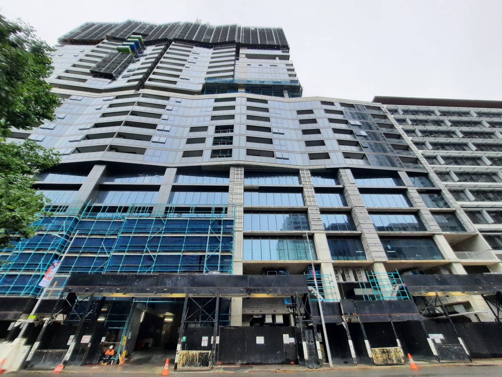 The mass and bulk of the building is softened by sky terraces while maintaining the vertical emphasis of the tower form to produce a distinctive urban habitat for the city. The building adopts a ‘hybrid form’ of tower with street wall to interface the ground, the street, the city, the sun and the sky. It incorporates unique environmental initiatives of harvesting sunlight and natural air to reduce the carbon footprint of the building and increase the enjoyment of residents and visitors. The tower is designed to balance outlook, natural ventilation and sunlight while giving wind protection to external private spaces. It is a mixed-use building, predominant residential, with shops at street level, offices above and an ‘aerial’ child care centre, all with basement carparking.