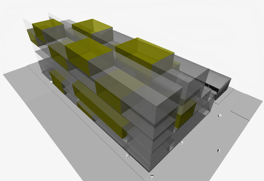 The hyperform is a perforated honeycomb that presents a unique opportunity to create a modern aesthetic untainted by sentimentality and arbitrary contextual gestures. The expression deals with the question: how diverse do you make the facade of a building with diverse interiors, the external expression and materiality of the block does not reflect its internal complexity, but provides a uniform jacket of material restraint. This disguise avoids arbitrary facade elements common to most multi-unit housing. The design focuses on liveable indoor/outoor space and the organisational section. It still responds to many performance factors such as sun control construction, technology and apartment amenity.