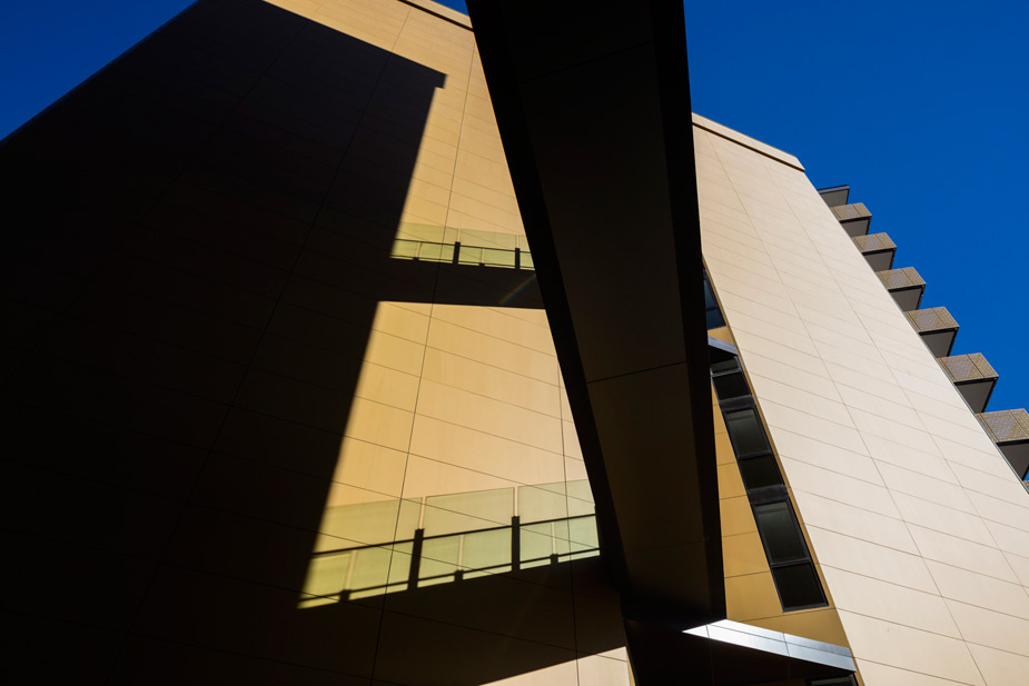 The metal ‘jacket’ has a prefinished, bronze colour. The side walls of the main slot and sky garden recesses are emphasised with a burnt yellow that reflect the golden colours of the sun. The glass to the south is clear or translucent, with fritting for privacy and light control, double glazed where required. The southern elevation is clad with silver-finished, metal panels and bronze-finished screens and framing. The finishes have a precious metal theme comprising bronze and silver.