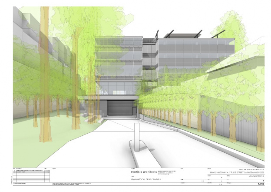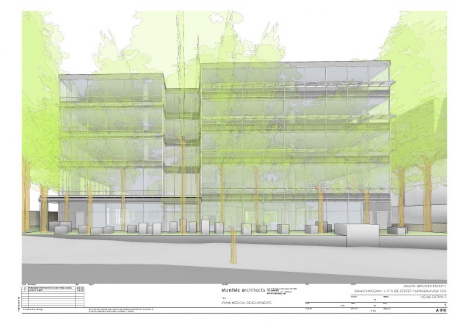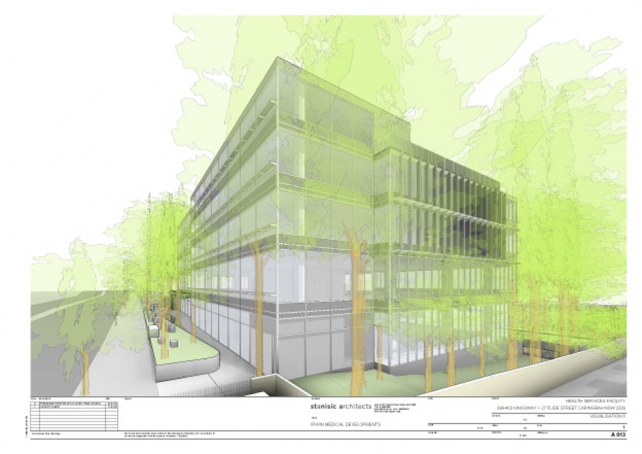 The design concept for the project is a freestanding, tempered glass pavilion within a landscaped setting that provides a flexible framework for occupation as a health services facility. The external expression has been skilfully designed to accommodate a range of different tenancies while maintaining the integrity of the design. The design achieves a strong image as a ‘healthy building’. The building character is further enhanced through the use of metal attachments (horizontal and vertical screens) and glass technology (clear, tinted, translucent and opaque glass and DGUs) that adjust to the existing and future neighbouring developments and respond to orientation.