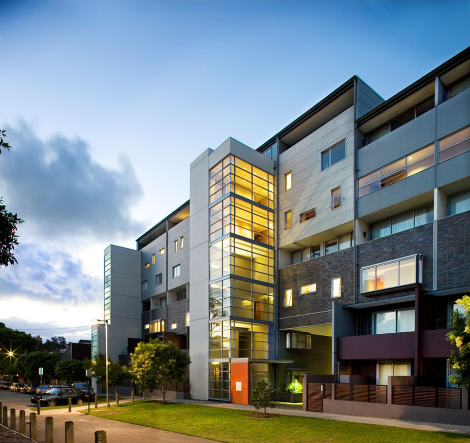 The architecture of MONDRIAN is direct yet layered, with strong grids, double height spaces and two storey apartments to create the experience of space, light and air. The buildings’ expression is based on abstract compositions – linear, horizontal and vertical lines with planes of aluminium screens, precast panels and glazing.