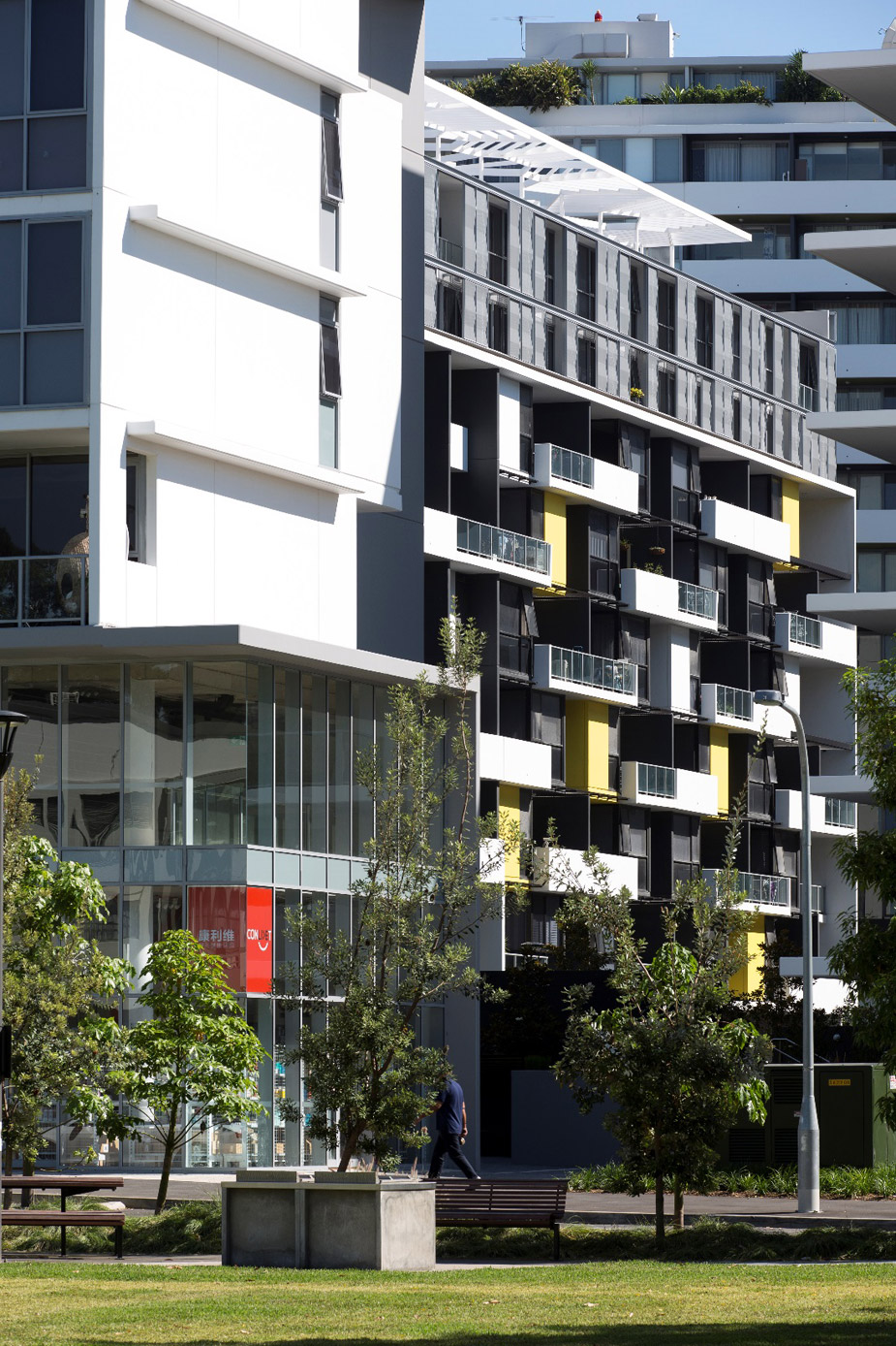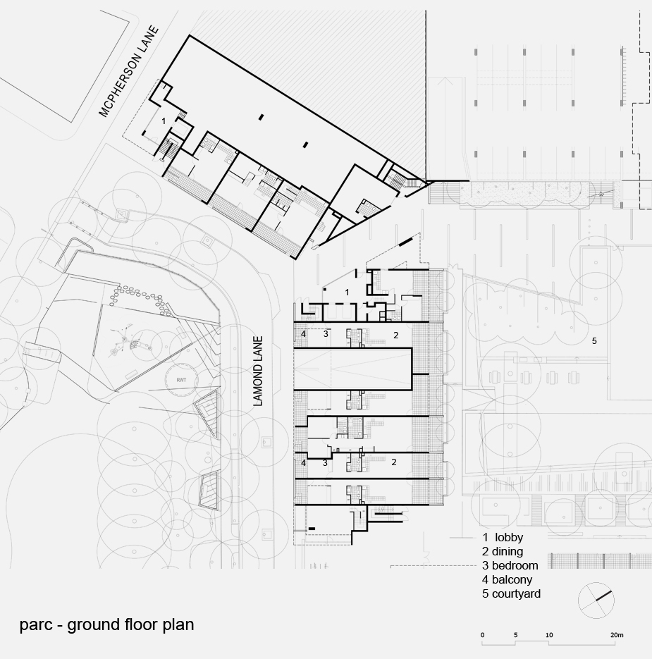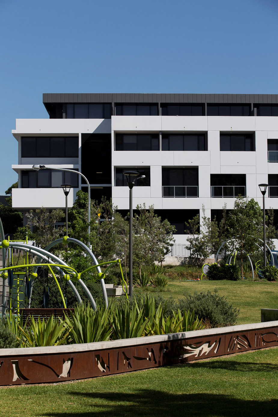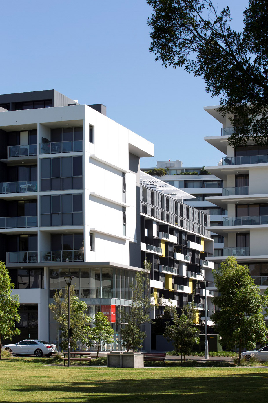 Parc is Stage 3 of the Emerald Park masterplan of the former Email industrial site that is situated on the western side of Joynton Avenue, between O’Dea Avenue and McPherson Lane and includes a major privately funded public park at the southern end, an extension of Mary O’Brien Reserve. It comprises two buildings, A1 and A2 that define the through-site pedestrian way, the southern edge of the central courtyard and Lamond Lane – a new street. The project was developed by Cronos Corporation and built by Waterside Constructions.