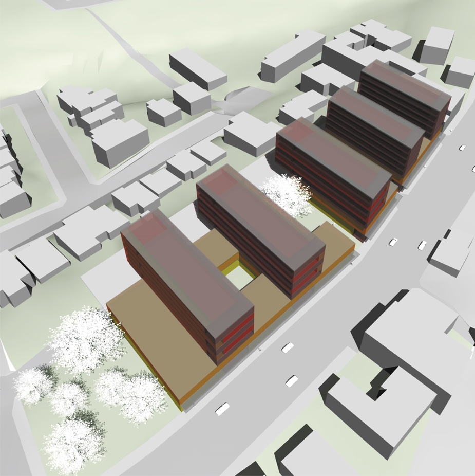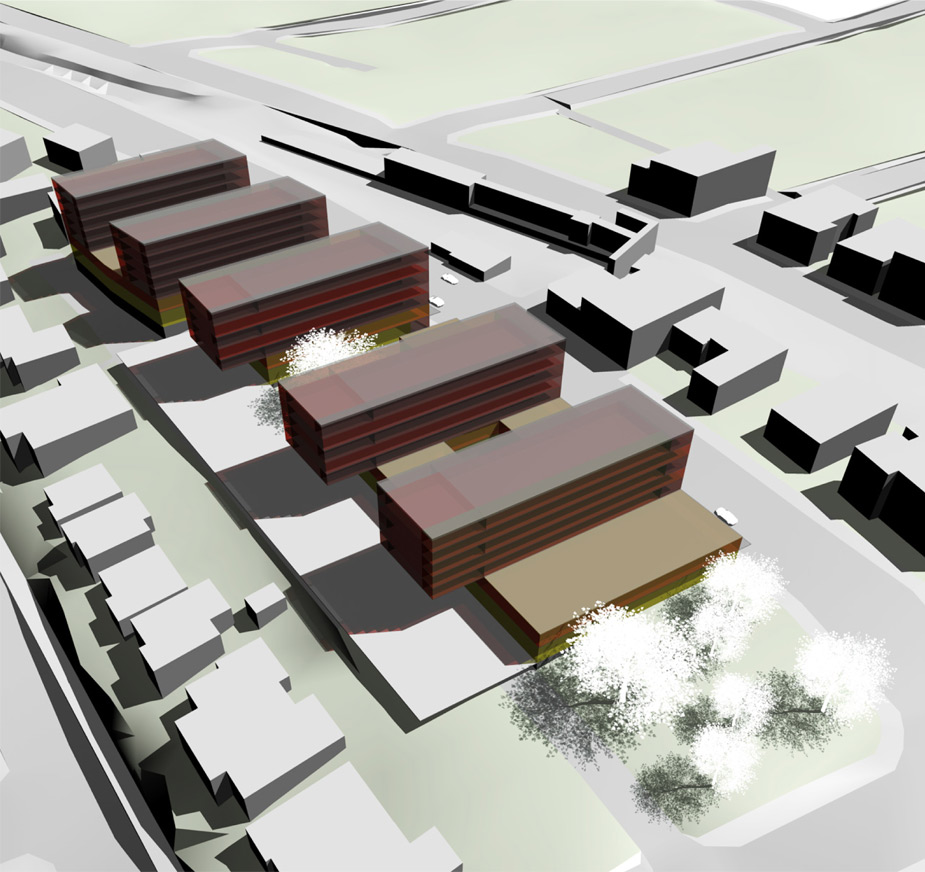This hybrid-use project is an exploration of hyperform – a massive, urban scaled block that supports new and diverse living spaces – it is a radical departure from the low density suburb with its deta…